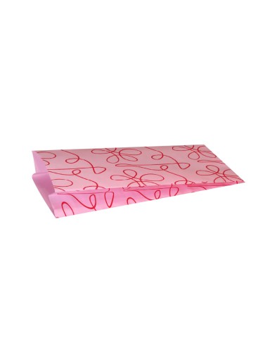 Bolsa de papel MG rosado de 35 gr tamaño #1F, con diseño Mix Líneas y fuelle de 5.6 cm que permite empacar productos con ancho o volumen. Ideal para artículos pequeños que requieren cierta capacidad, brindando una presentación atractiva y funcional para uso comercial.