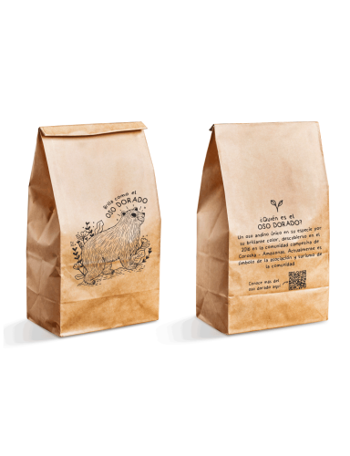 BOLSA CON PROPÓSITO, busca difundir la existencia del Oso Dorado. En la comunidad Campesina de Corosha, Amazonas, existe un oso andino único en su especie y aún se desconoce la rázon de su coloración dorada.