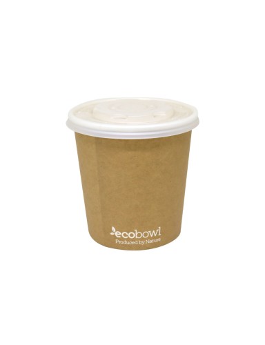 Ecobowl hechos de papel de origen responsable y forrados con bioplástico Ingeo ™ , los ecobowl de papel son una alternativa sostenible diseñada para ser comercialmente compostada después de su uso. Un producto versátil, adecuado para alimentos fríos y calientes y comúnmente se usa ecobowl para cuchareables, ensaladas y sopas para llevar. Color kraft natural impreso con tintas a base de agua o soja no tóxicas.